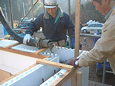 1階部分はクアドロックで、2階部分は木造になります。
